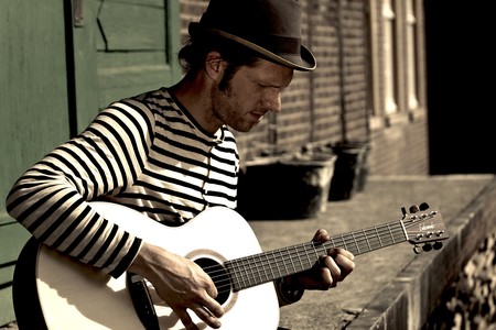 Für jeden ist etwas dabei. Ob „old school“ oder „up to date Rock“ zum mitsingen und tanzen, Countrytunes zum freudigen Pfeifen, oder einfach die smothe Jazznummer für den ersten Frühlingsflirt. Der Münsteraner Musiker ist seit Jahren unterwegs: Auf Solokonzerten in Kneipen und Pubs des Ruhrgebiets, bei Abstechern nach England, Irland oder Luxemburg und natürlich auf der Straße.